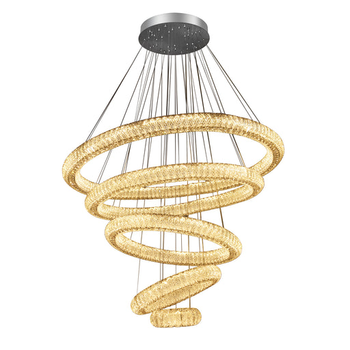 The Miralia 5-Ring Spiral Chandelier is a masterclass in modern architectural lighting. This striking fixture features five graduated rings of bril...
